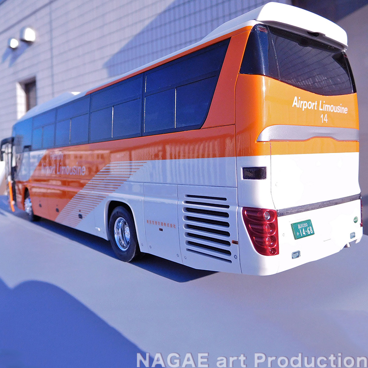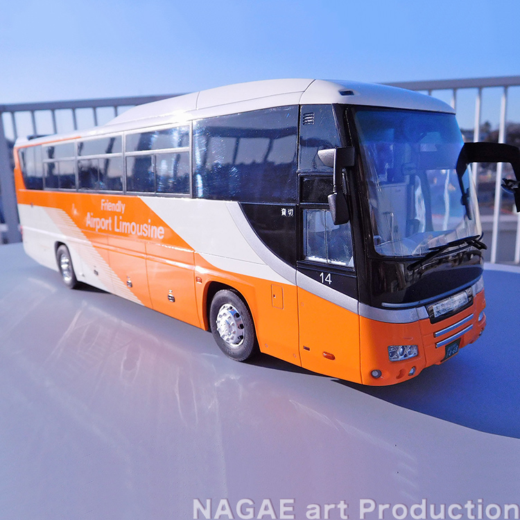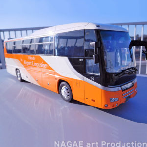 羽田空港・成田空港のアクセスに最適なリムジンバスです。主に三菱ふそうのエアロクイーン、本作例の日野セレガが採用されており、白のボディにオレンジのラインが眩しく美しいデザインです。
