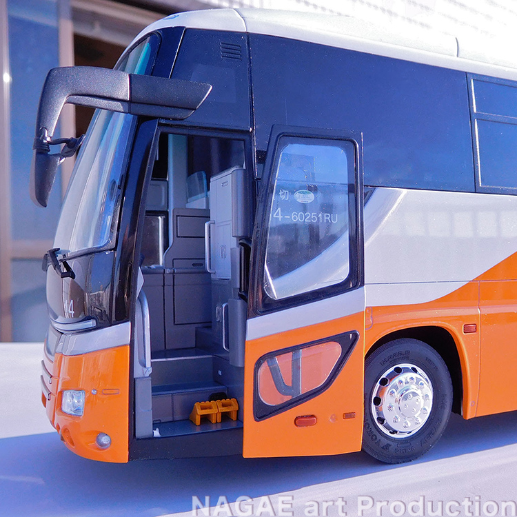 外も中も大変手間を要するキットでしたが、仕上がると御覧の通りまるで実車の様な美しい仕上がりになりました! バスのキットを実車の様な仕上がりにするには色落とし等の他のスケールキットにはない大変な部分もありますが、その分完成後の充実感はひとしおです。