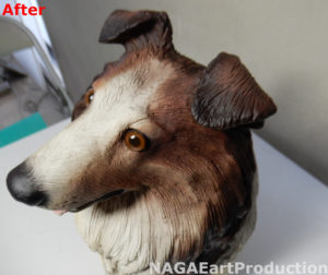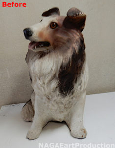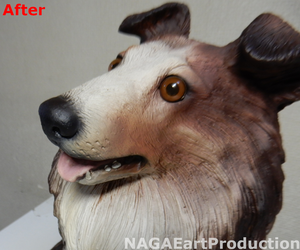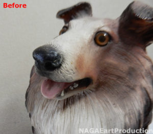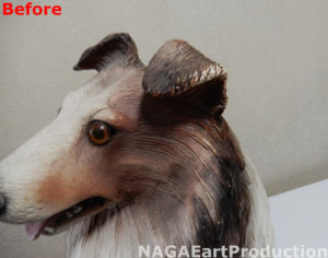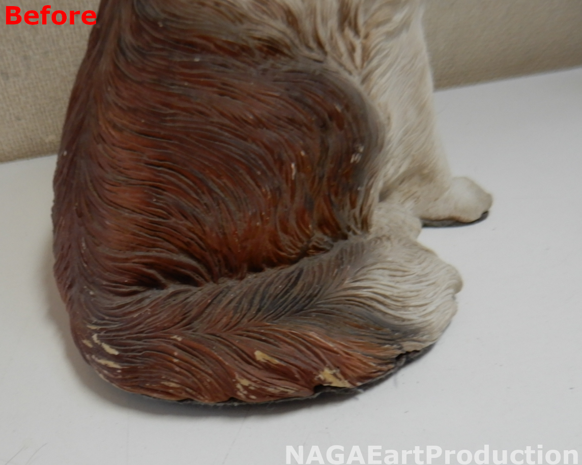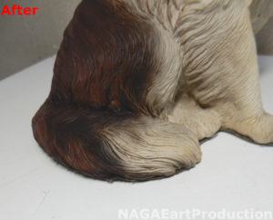 それ以外にも耳や尻尾、足等、体の各部の色が剥げていましたのでそれぞれの場所を塗装し直します。